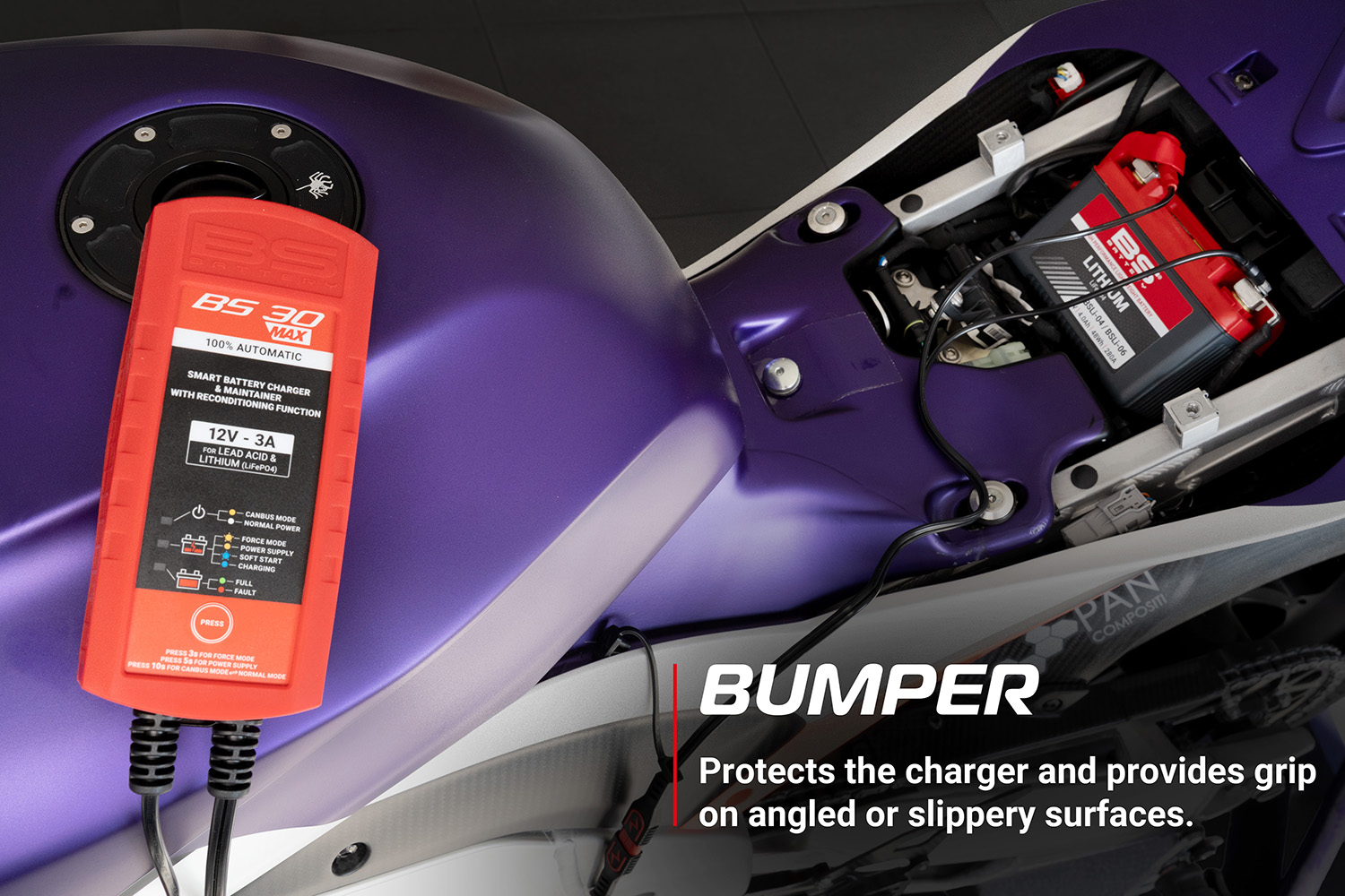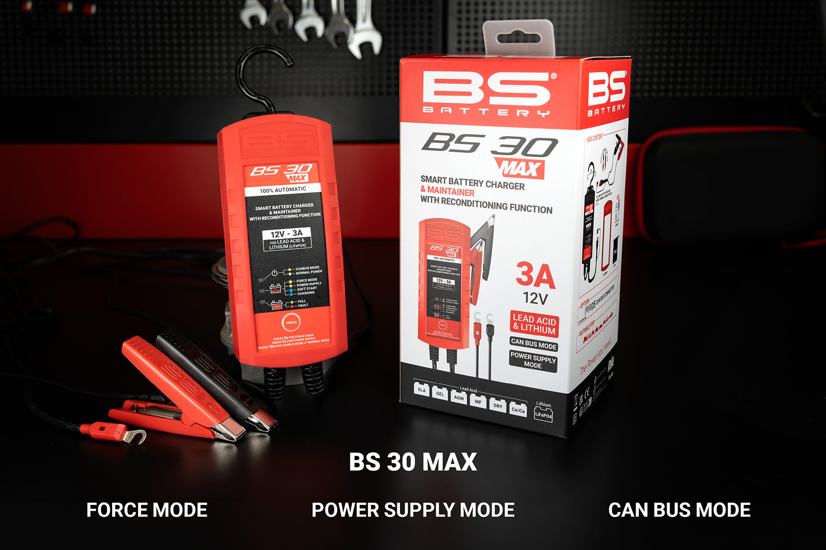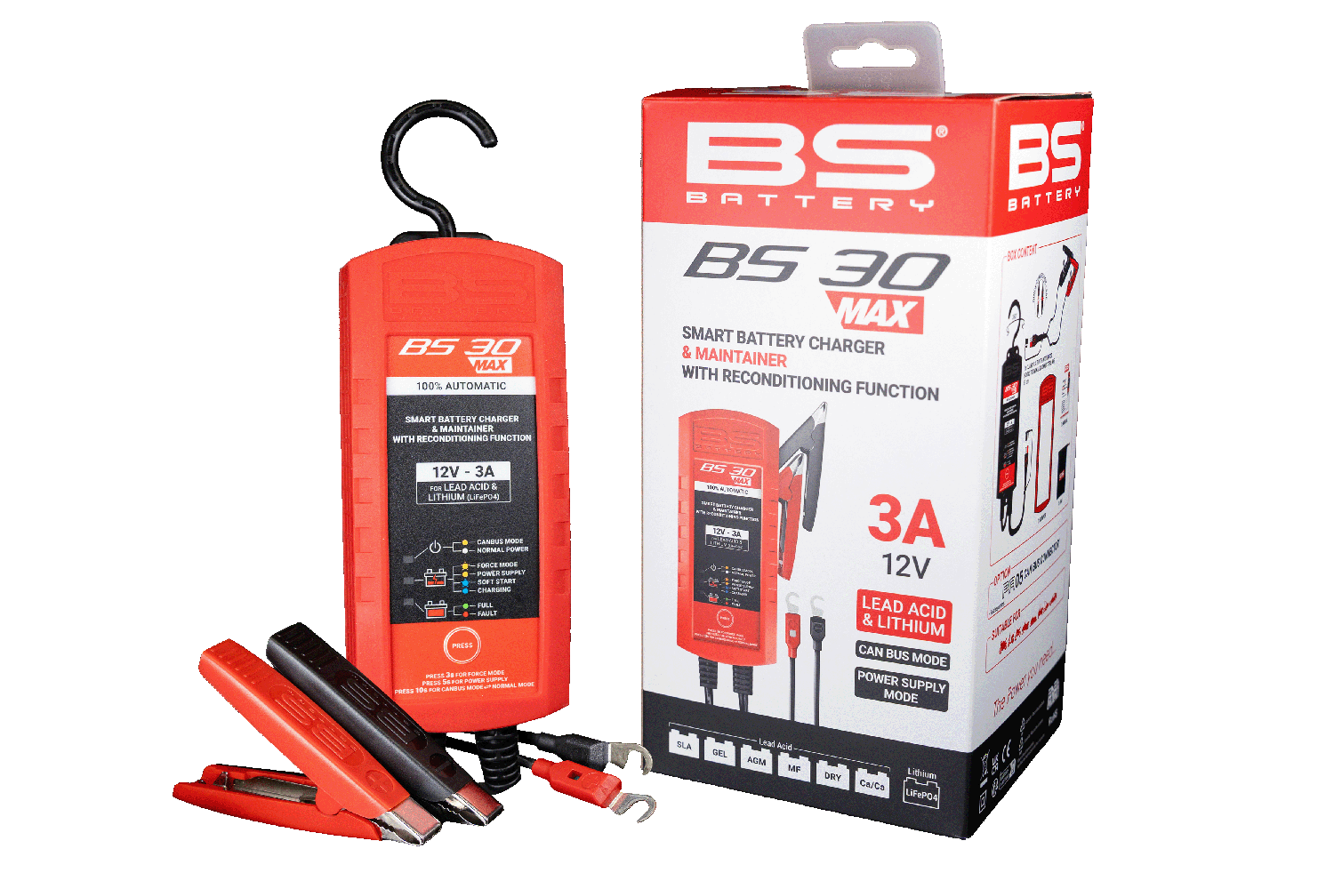 The BS 30 MAX is a smart 12V – 3A battery charger and maintainer with reconditioning function.